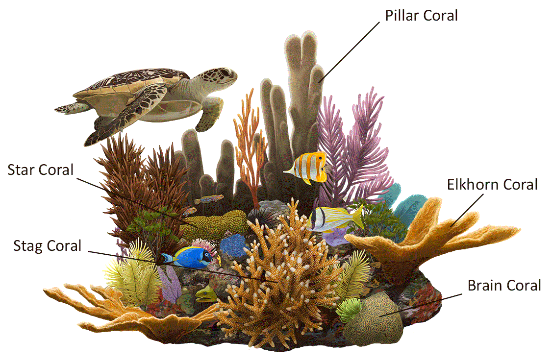 The reef grows. Coral fragments are planted and restored by Reef Renewal USA.