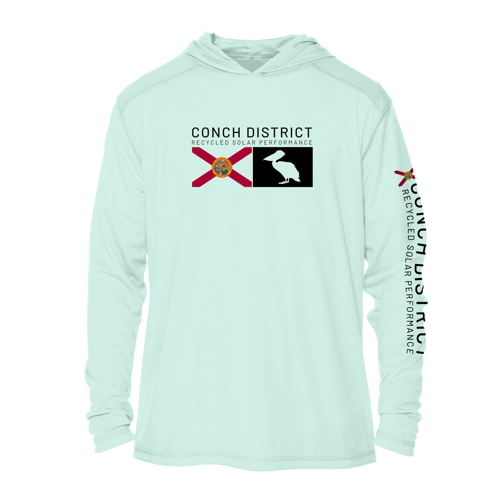 Conch District Florida Flag Logo Hoodie | Mens Recycled Solar Performance