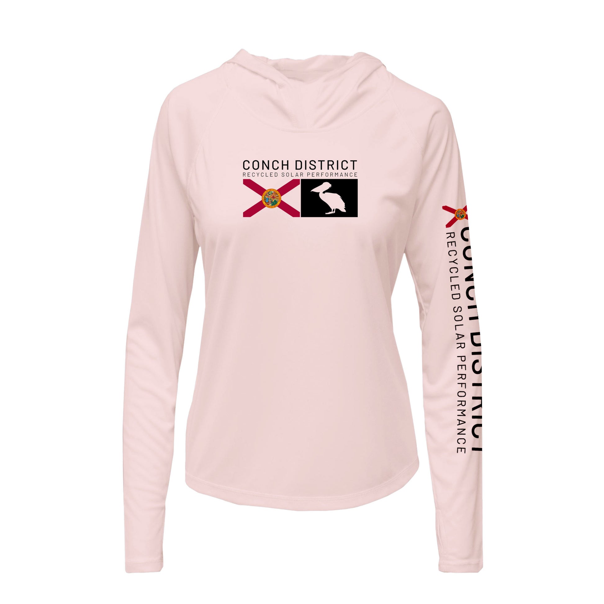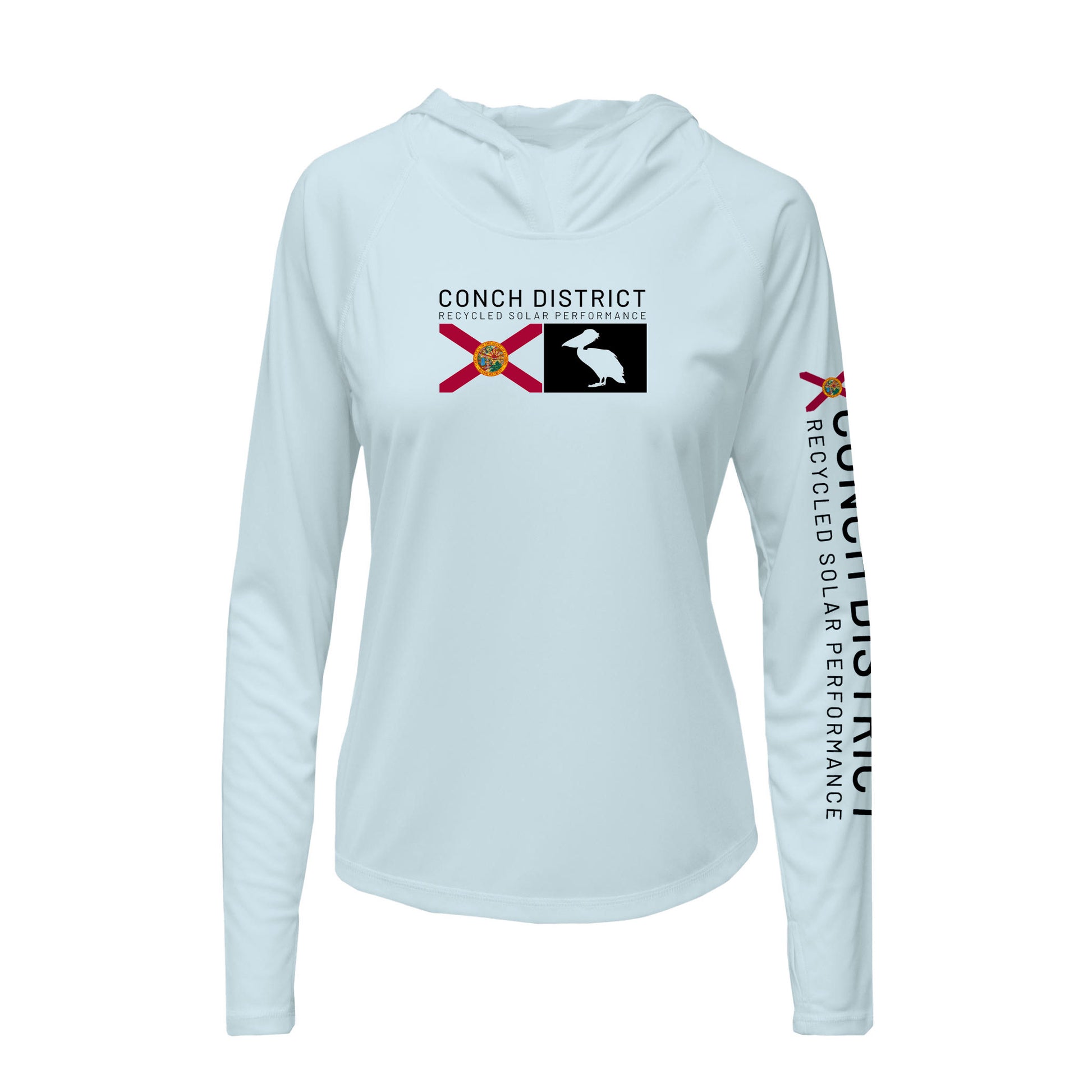Conch District Florida Flag Logo Hoodie | Womens Recycled Solar Performance