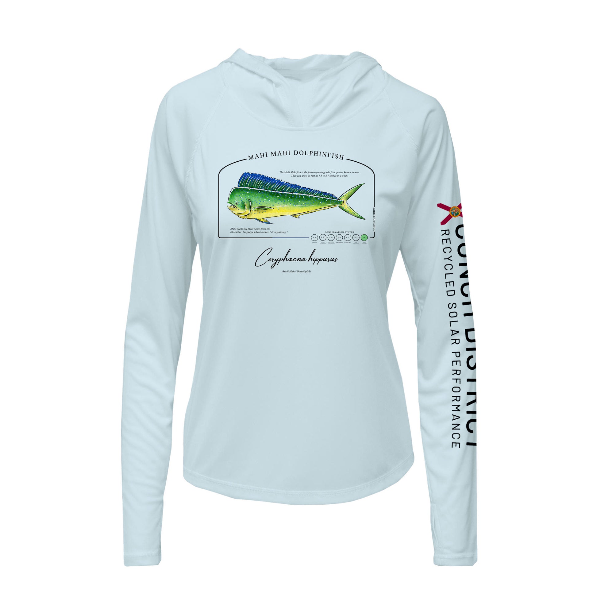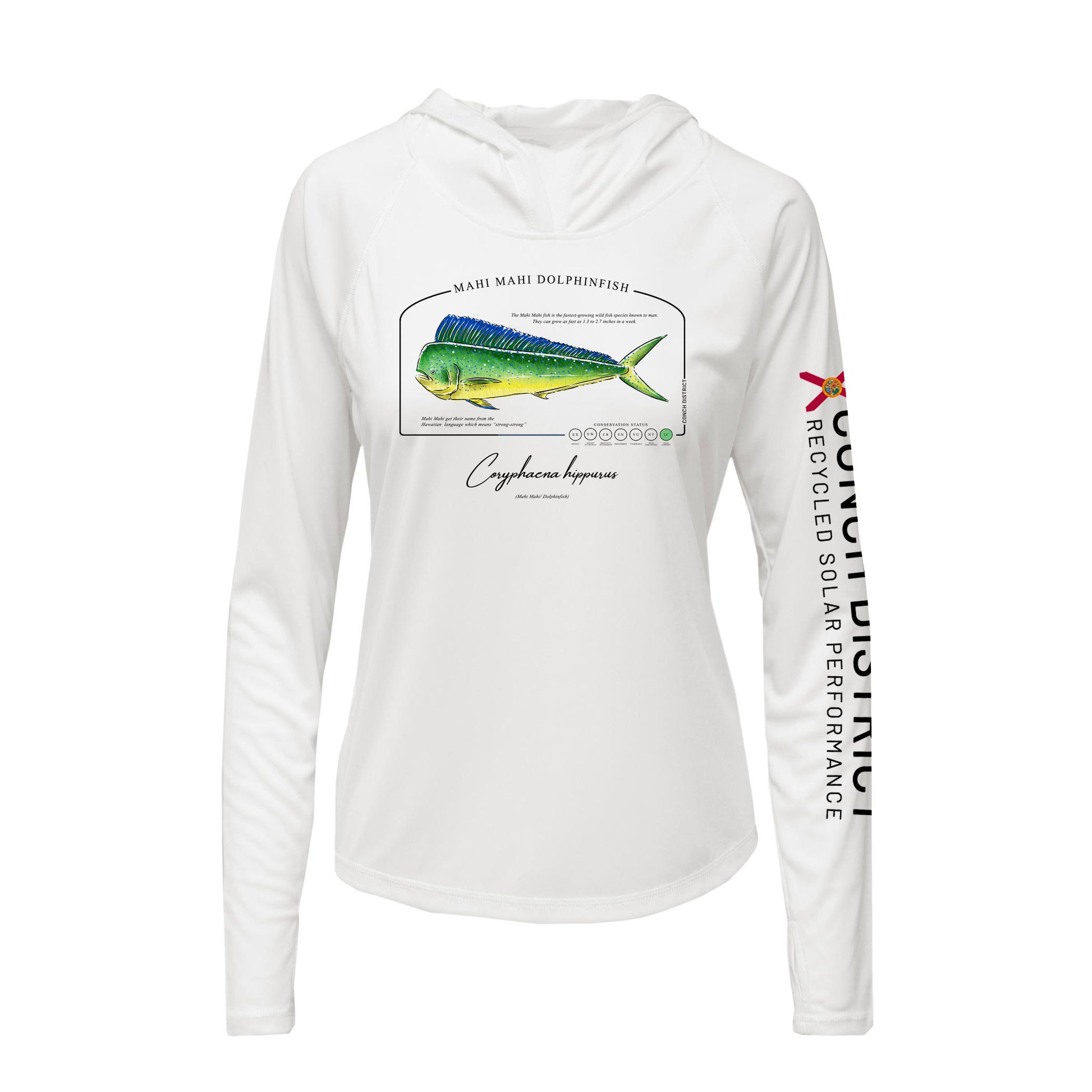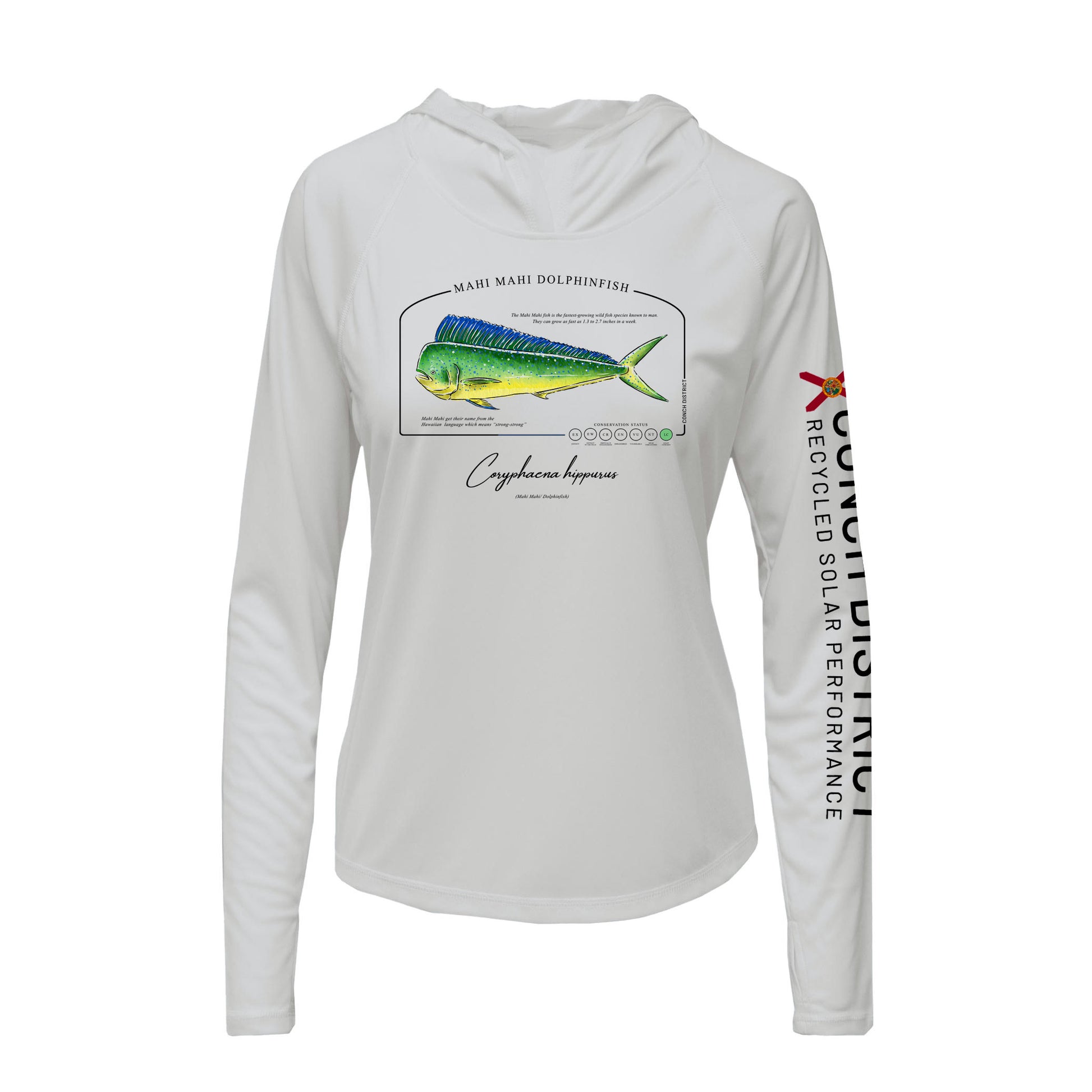 Mahi Mahi Dolphinfish Conservation Status Hoodie | Womens Recycled Solar Performance